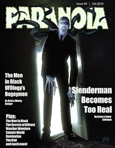 Paranoia #59 - Fall 2014 (DOWNLOAD) $ 2.99 In this AMAZING ISSUE: Slenderman Becomes Too Real Sometimes chaos is faceless. Sometimes it has a face. By Loren & Jenny Coleman The Men in Black—UFOlogy's Bogeymen Nothing had inspired the paranoia wrought by those mysterious figures… By Brad & Sjerry Steiger The Tendrils of the Slenderman