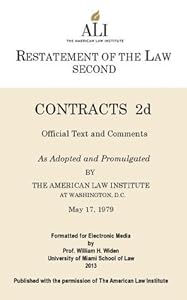 The Restatement Second of Contracts is the quintessential guide to the modern common law of contracts. A concise and coherent overview of contract law, it covers fundamental principles and provides substantial scholarly analysis. Its inclusion of commentary and illustrations ensures comprehensive treatment of relevant law. The American Law Institute (ALI), an organization dedicated to clarifying and improving the law, produces and publishes Restatements. They are the product of long-term, cooperative expertise – drafted by scholars with guidance from state and federal judges, academics, and practitioners on every side of the issues.The Restatement Second of Contracts has been relied on and adopted by courts nationwide. As a result, it is an authoritative condensation of the law and one of ALI’s best-recognized and most-frequently cited publications.This is a complete version of the Restatement (Second) of Contracts (without Reporter's notes). It is intended for use by law students and professors who wish to have this work in a convenient electronic format. The electronic version was prepared by Professor William H. Widen of the University of Miami School of Law.